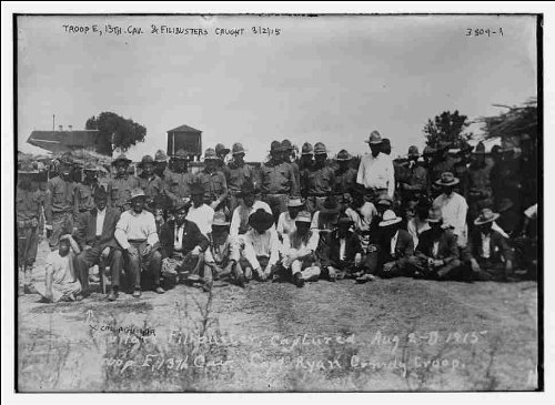 Printed at 11 x 14 inch and mounted to foam board The George Grantham Bain Collection represents the photographic files of one of America's earliest news picture agencies. The collection richly documents sports events, theater, celebrities, crime, strikes, disasters, political activities including the woman suffrage campaign, conventions and public celebrations. The photographs Bain produced and gathered for distribution through his news service were worldwide in their coverage, but there was a special emphasis on life in New York City. The bulk of the collection dates from the 1900s to the mid-1920s, but scattered images can be found as early as the 1860s and as late as the 1930s. Reprint Troop E., 13th Cav. and Filibuster prisoners, 8/2/15 1915..../ Reprint Troop E., 13th Cav. and Filibuster prisoners, 8/2/15 1915 / foam board